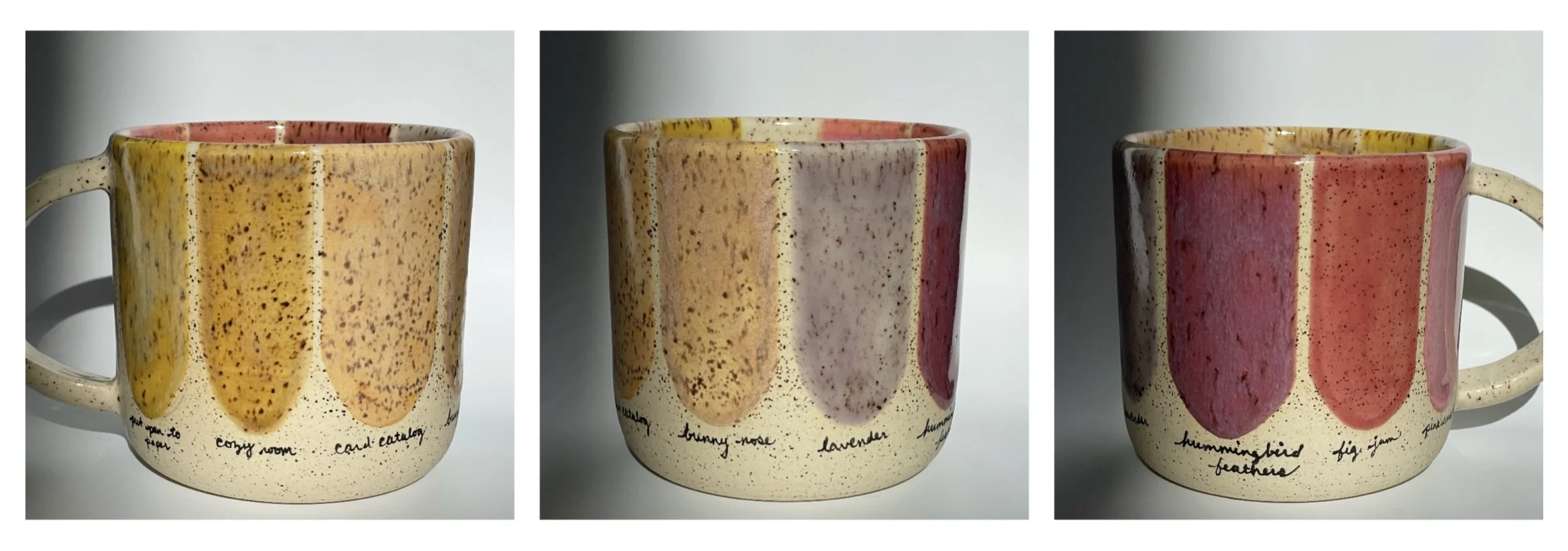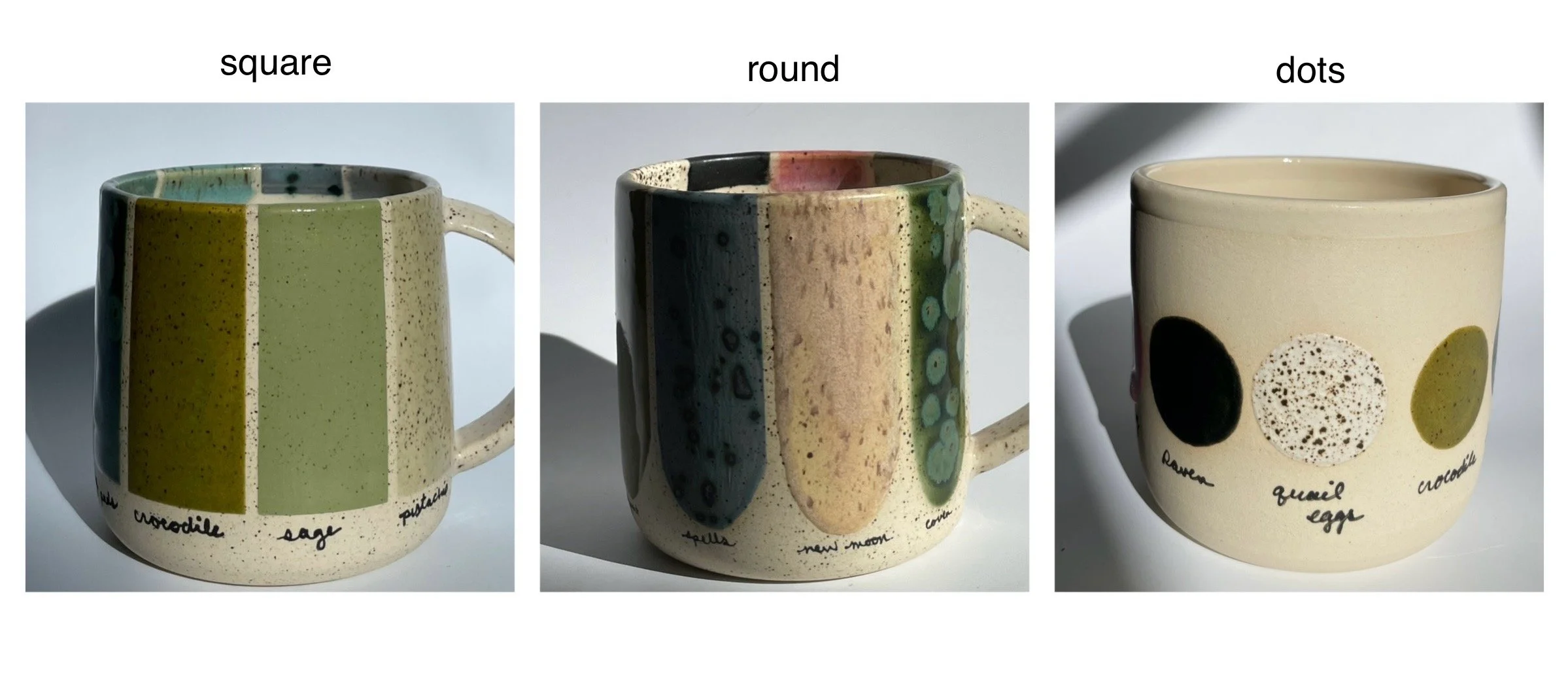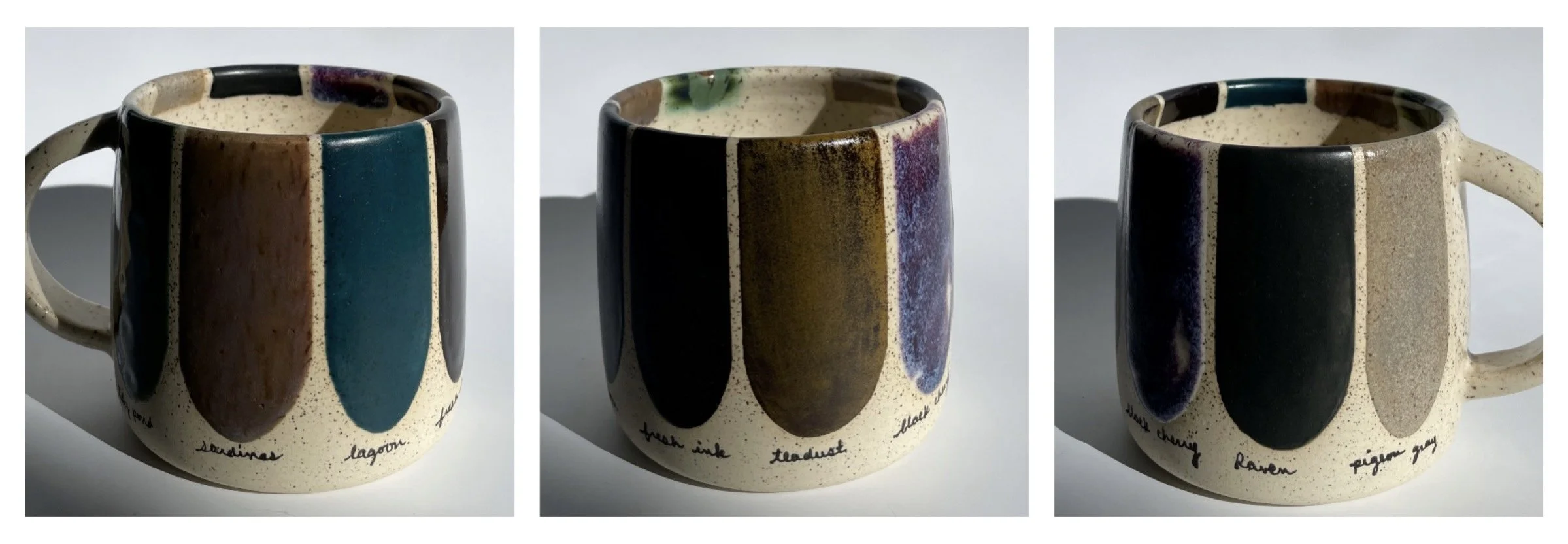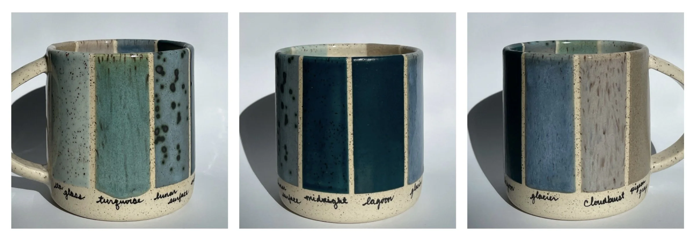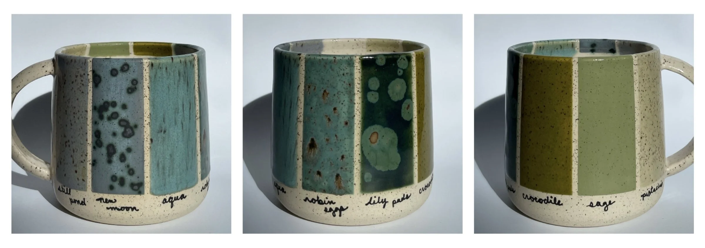 example of how mottled glazes can look so different (eucalyptus and still pond are the same glaze)