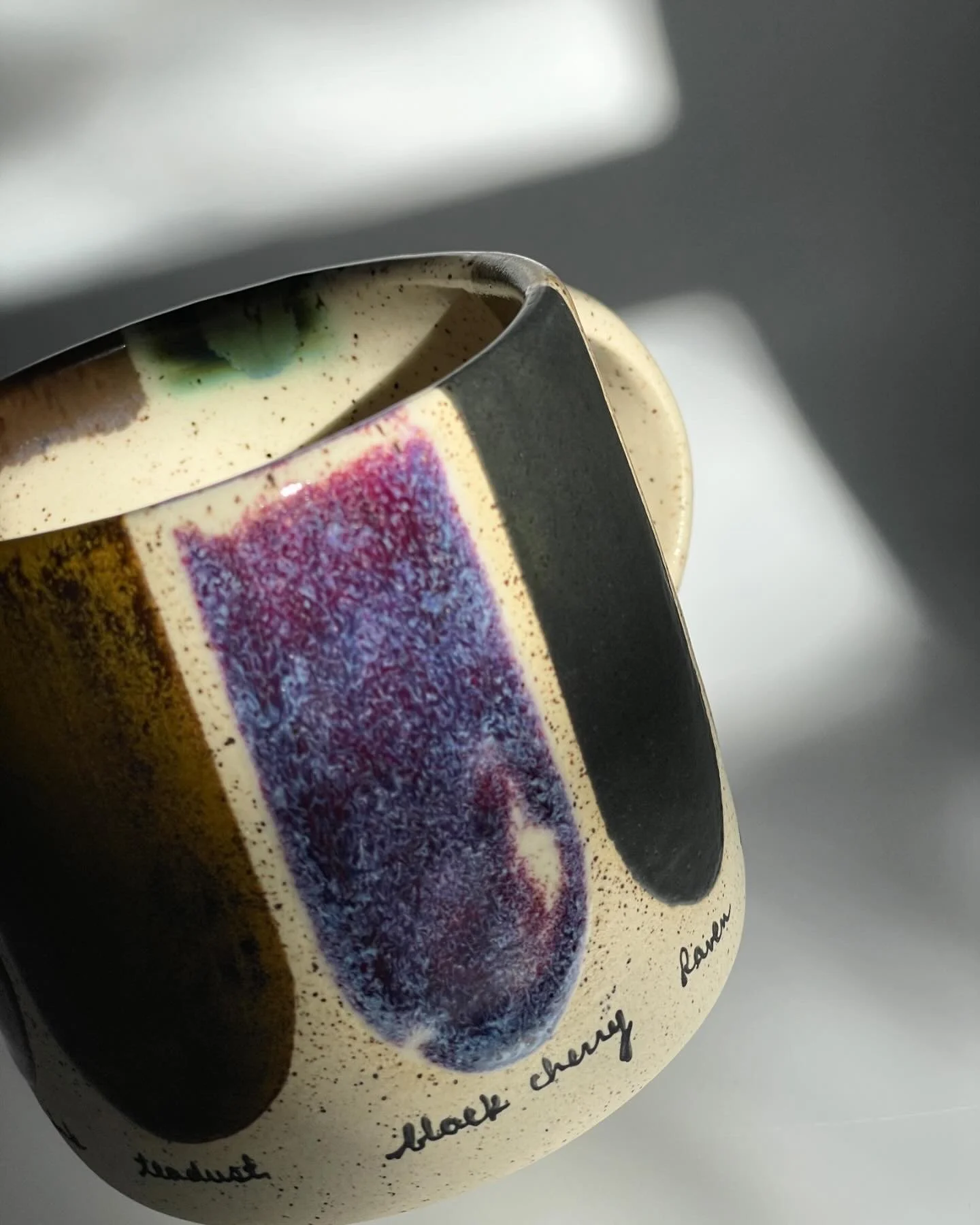 some glazes will break and run in unique ways (black cherry, #60 often has white spots like this)